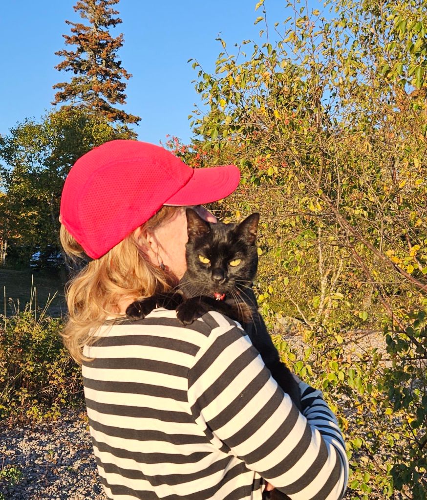 Boo had become impatient with walking-by-leash by this time, so I often took her for walks on my shoulder. She loves it up there and never struggles to jump down.