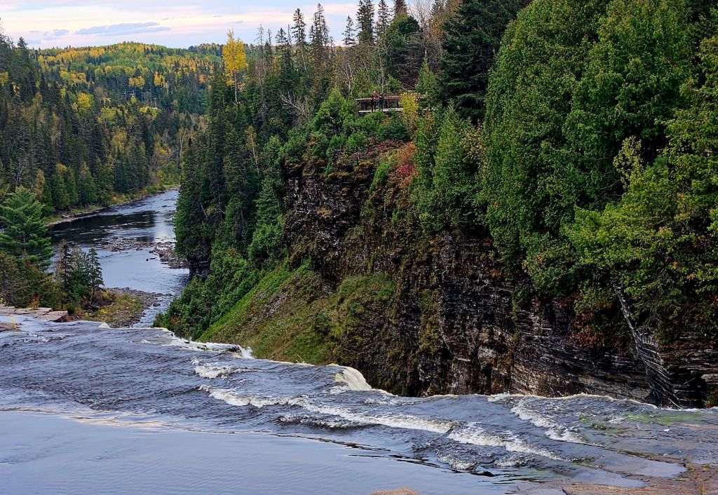 We spent night #7 at Kakabeka Falls, called “Niagara of the North,” which drops 150 feet. This is the view from the top of the falls rather than the usual straight-on view.