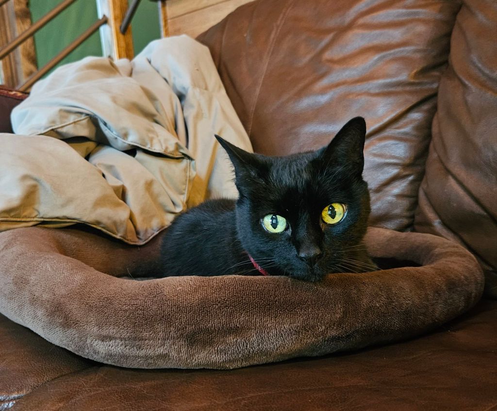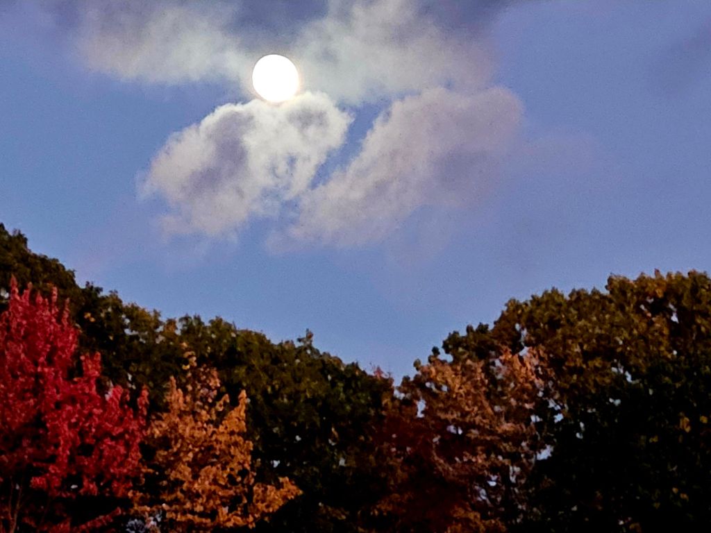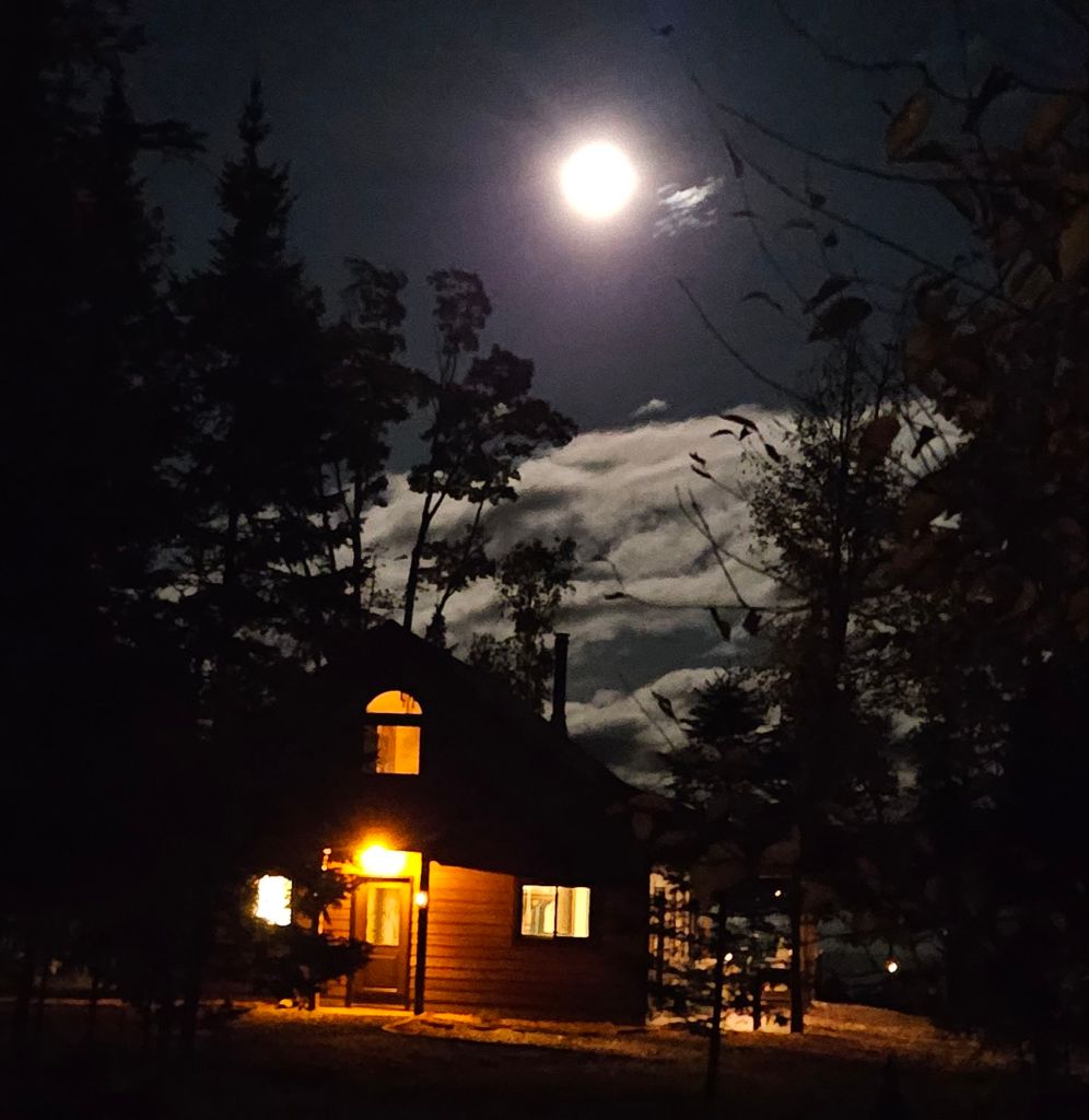 Approaching camp.A full moon rises over autumn leaves.The road to Camp Many Moons.Aurora borealis from Lake Superior shoreline. It’s rare to see pinks. Green is more common, but when streaked by pink, it’s… wow. Huron Bay shoreline. The warm colors were matched by warm temps, allowing rowboat outings in mid-October.Some nights, the aurora was muted. (Nature doesn’t always shout. Sometimes, it whispers.) Taken from the camp dock.A few days before I left, the drama at Pt Abbaye came not from the trees but from the water. Shades of blue/grey!The day before I left, it was mostly shades of yellow in the woods.And then, the full moon, rising over the new house. If you really look, you can see so many shades at night. Back in northern Virginia, my neighborhood celebrated Hallowe’en in colorful fashion!But Boo the Traveling Cat is always black. I adopted her 15 years ago on Halloween weekend. (That’s why her name is Boo.) She goes where I go and tolerates everything. The one constant in a life of constant change!
