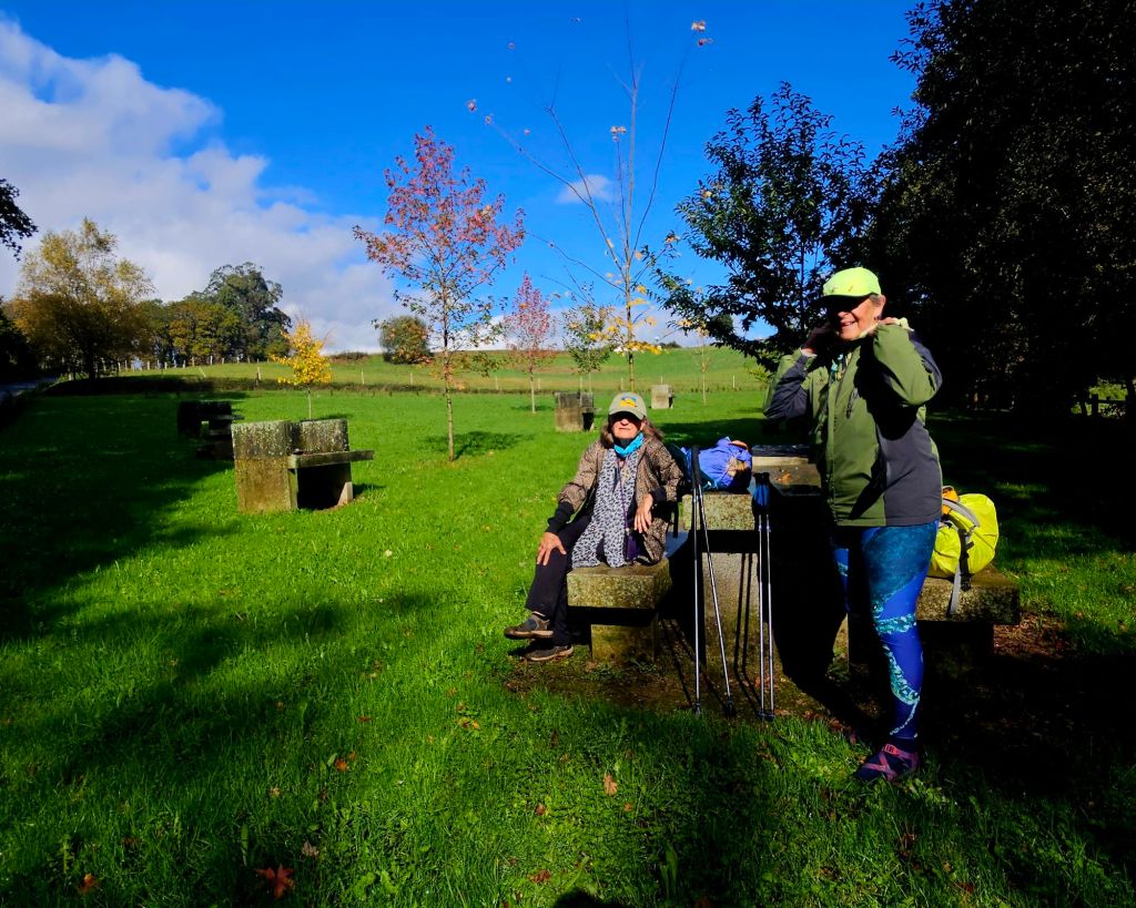 And today, we got rain. I suppose you can’t call yourself a true pilgrim of El Camino until you do. In spite of this, the nearly 10 miles felt like less … probably because it was mostly flat. And because the rain didn’t last all day. Pilgrims from Belgium and the U.K. joined us briefly. Only 15.5 miles left, and Ginny and I both feel we could go farther. But we aren’t done yet! I added some blister prevention (Compede) to my troublesome toe today, grateful for veteran Maria’s administrations. Maybe this is the best “first walk” for newbies like my sister Ginny and me. The kind that leave you wanting more. The trek on Camino Ingles continues below…