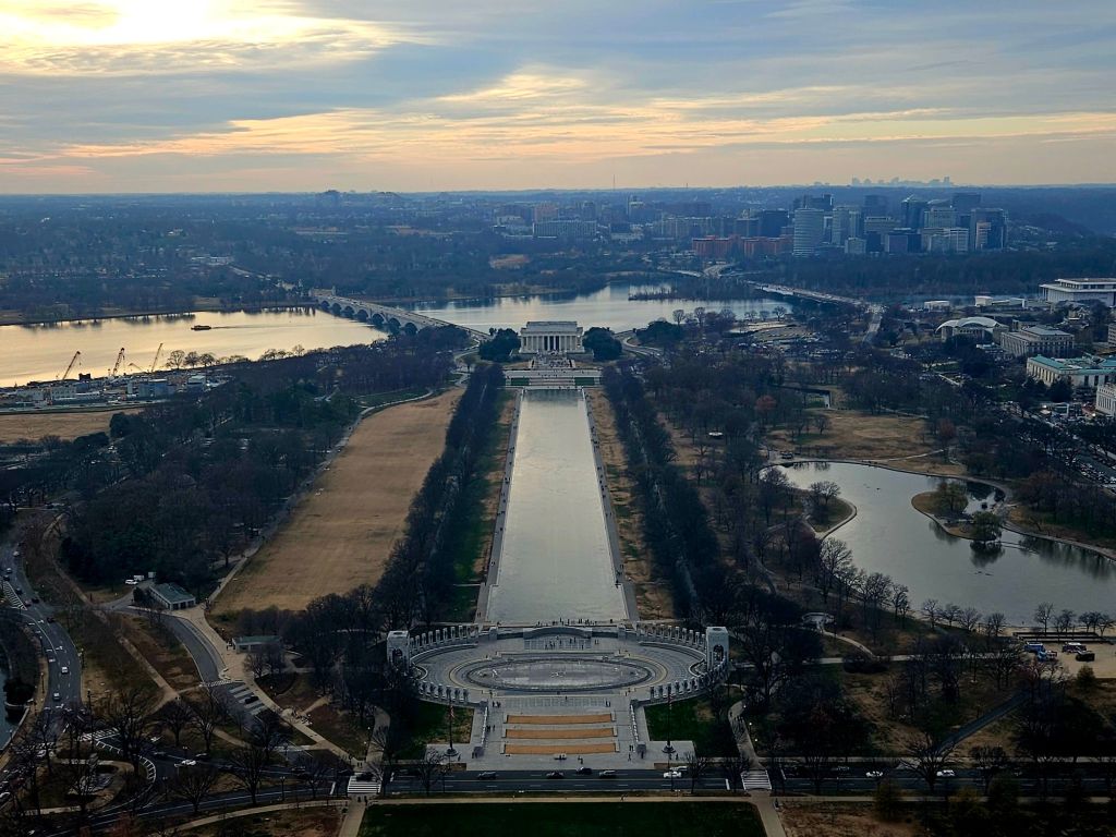 I end this post with another view from the top of the Washington Monument. That’s the WWII memorial in the foreground and the Lincoln Memorial in front of it, on the other end of the reflecting pool. The city of Arlington, where I live, is on the opposite side of the Potomac River. This was my first time going up the iconic monument after 36 years here. While the tourists saw a cityscape, I saw decades of fulfilling work — and also play.