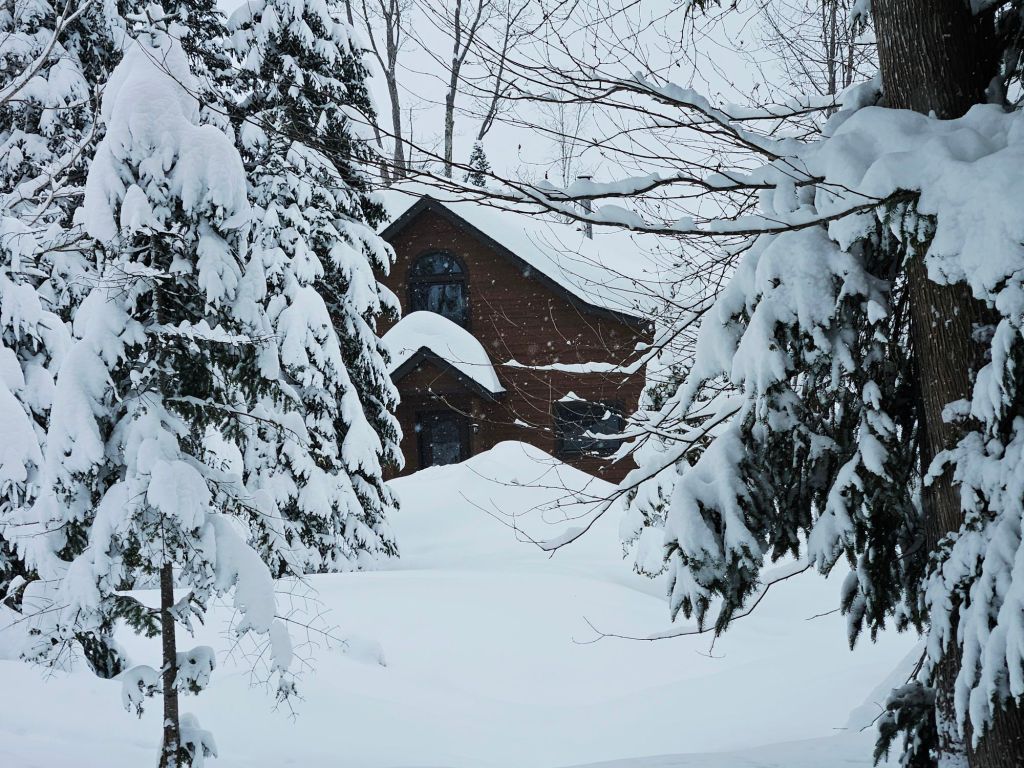 The Cabin at Many Moons in winter, south side. Yeah. I love it this way.