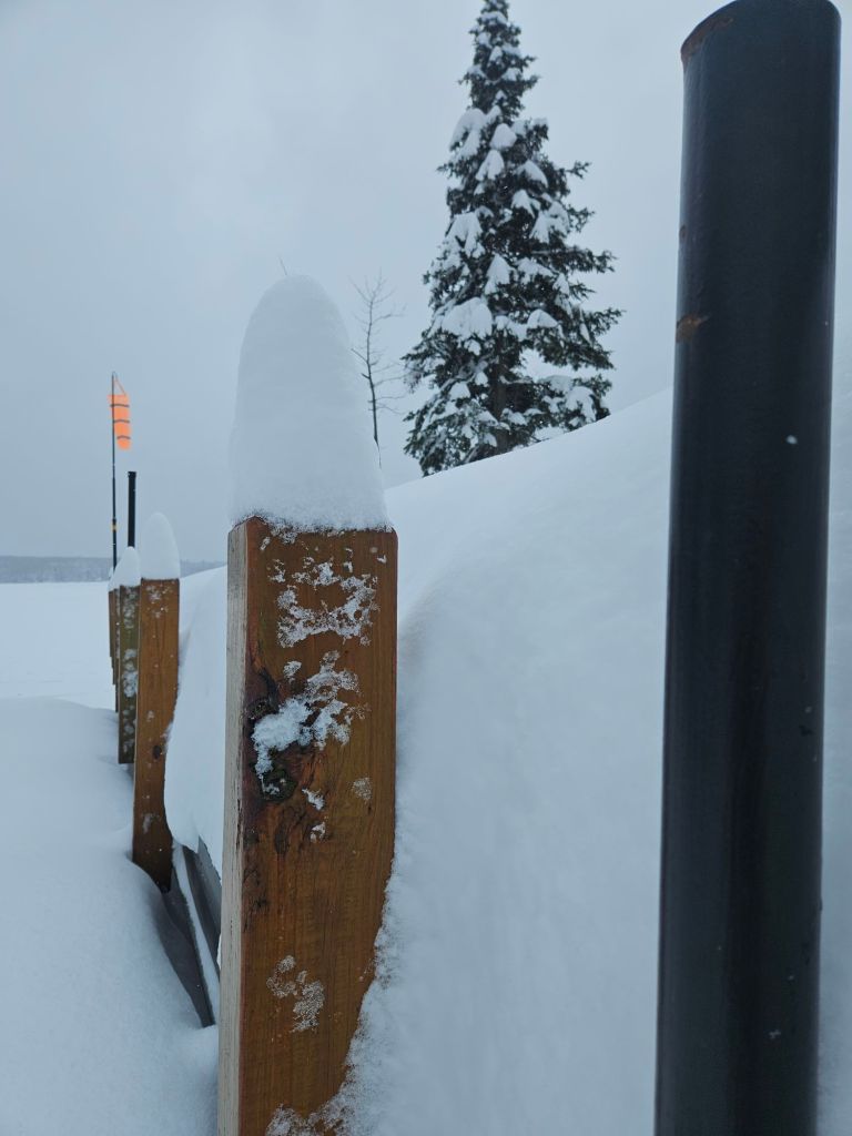 I measured 32″ of snow on that dock about a week ago. That snow-cap on top of the post is about 6″.