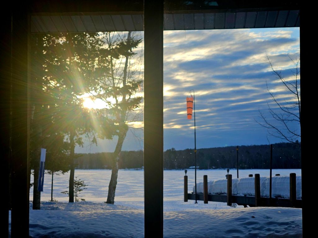 I’ll end this post with some more winter scenes, including a cold sunrise as seen through the patio door…