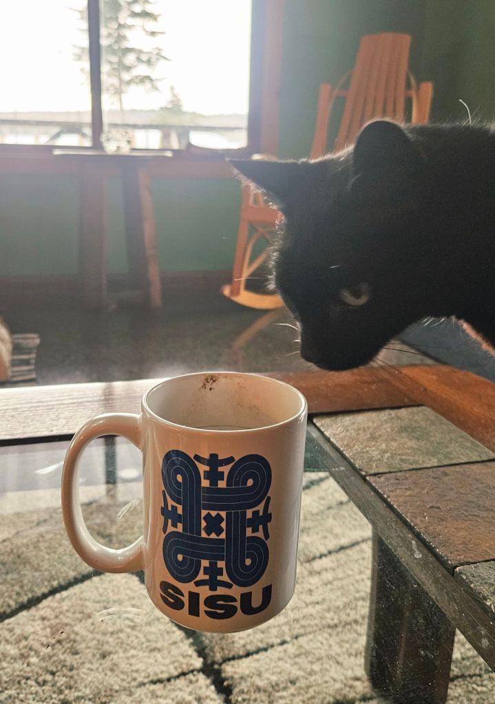 She perched on the coffee table (which has a glass center) this morning to investigate my dirty coffee cup. As if to say, “You drink from THAT??” 😉 She’s done many things that people assume cats won’t do, such as a long boat trip, riding on my paddleboard, and swimming. Instead of assuming she can’t, I tested her out and learned she can–partly because she trusts me. Her diet is an ongoing puzzle though. What’s tasty one day is boring the next!