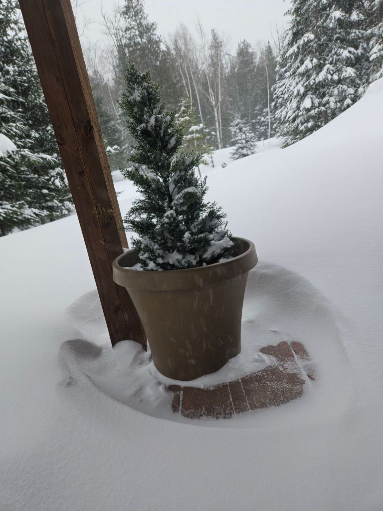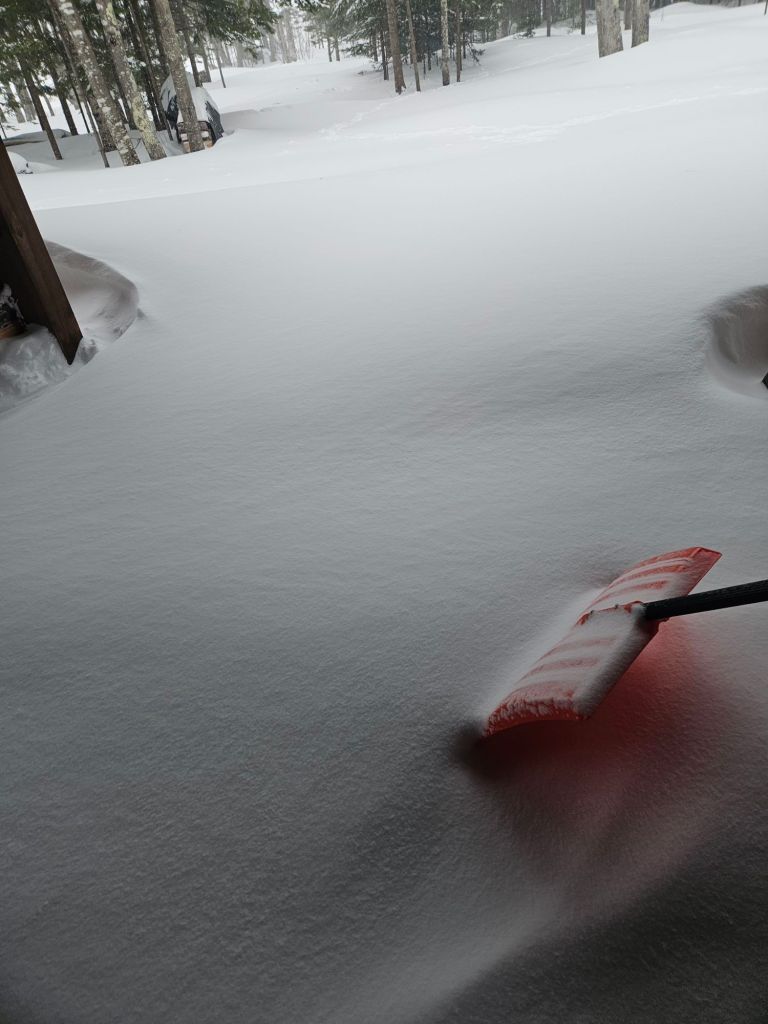 Almost 40″ fell on Mount Arvon, just 15 miles away. But here on the west side of Huron Bay, maybe 16″ based on my twice-daily shoveling.
