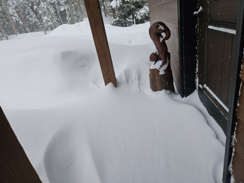 On my own porch, I woke up on Monday to moderate drifts. Shovels are always nearby during winter in the Upper Peninsula, since you often need to shovel your way out.