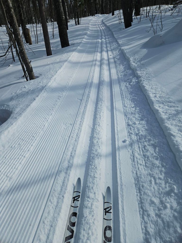 As soon as the road was open, I checked out the closest ski trails. Fresh snow, freshly-groomed!