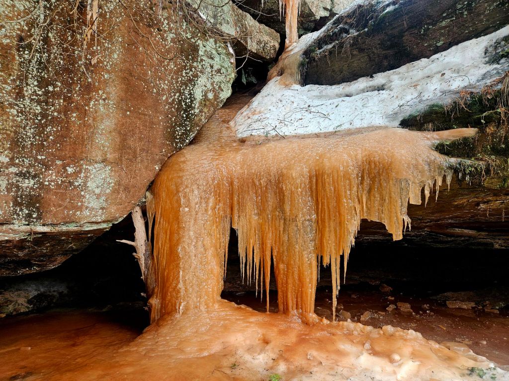 This reddish hue is caused by iron oxide, I believe. A dramatic example of this is Blood Falls in Antarctica. I will post about my time in Antarctica soon.