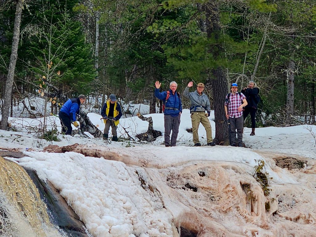 ….and hiking buddies across the river from me on the lower falls. How did we cross the river?