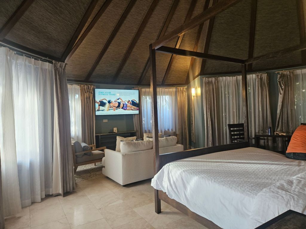 When we arrived at Sandals Grenada, we learned that our “room” was upgraded. And how. Here’s how it looked as we approached…a stand-alone building with a peaked roof.