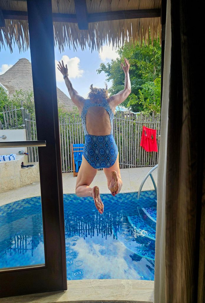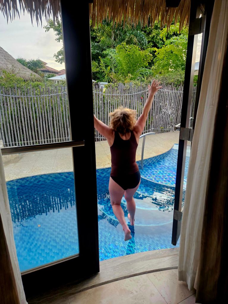 The bedroom door opened up into the pool. What fun to jump in that way!