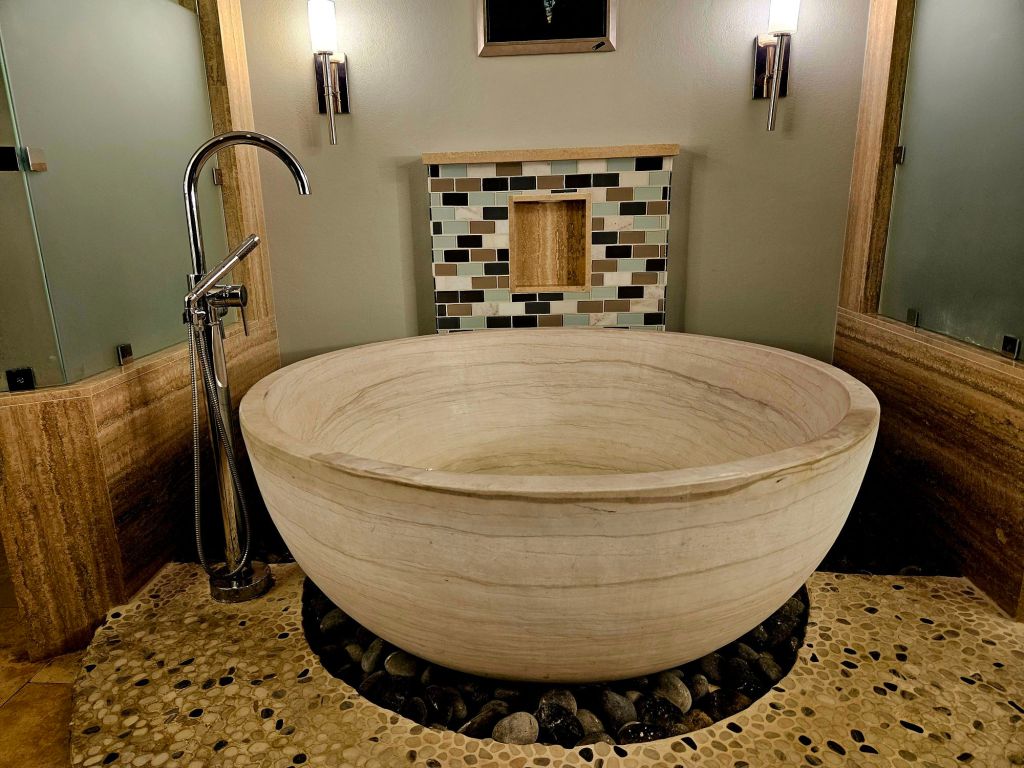 The huge round bathtub also went unused. The outdoor shower was easier–and sort of fun.
