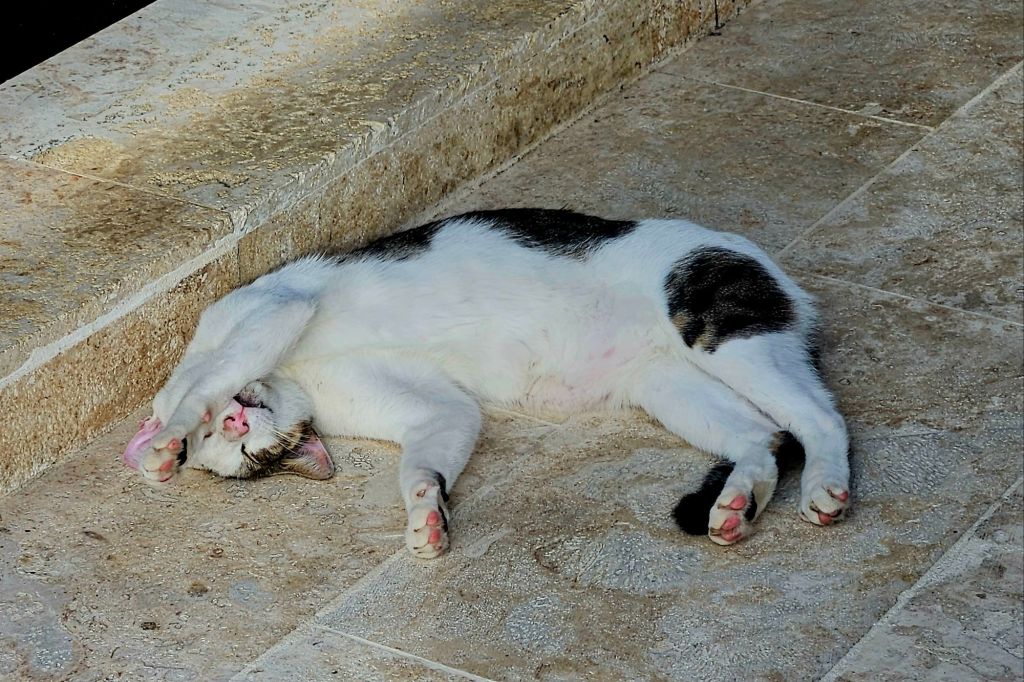 The cats at Sandals Grenada were friendly and well-fed…and, judging by this one, very content!
