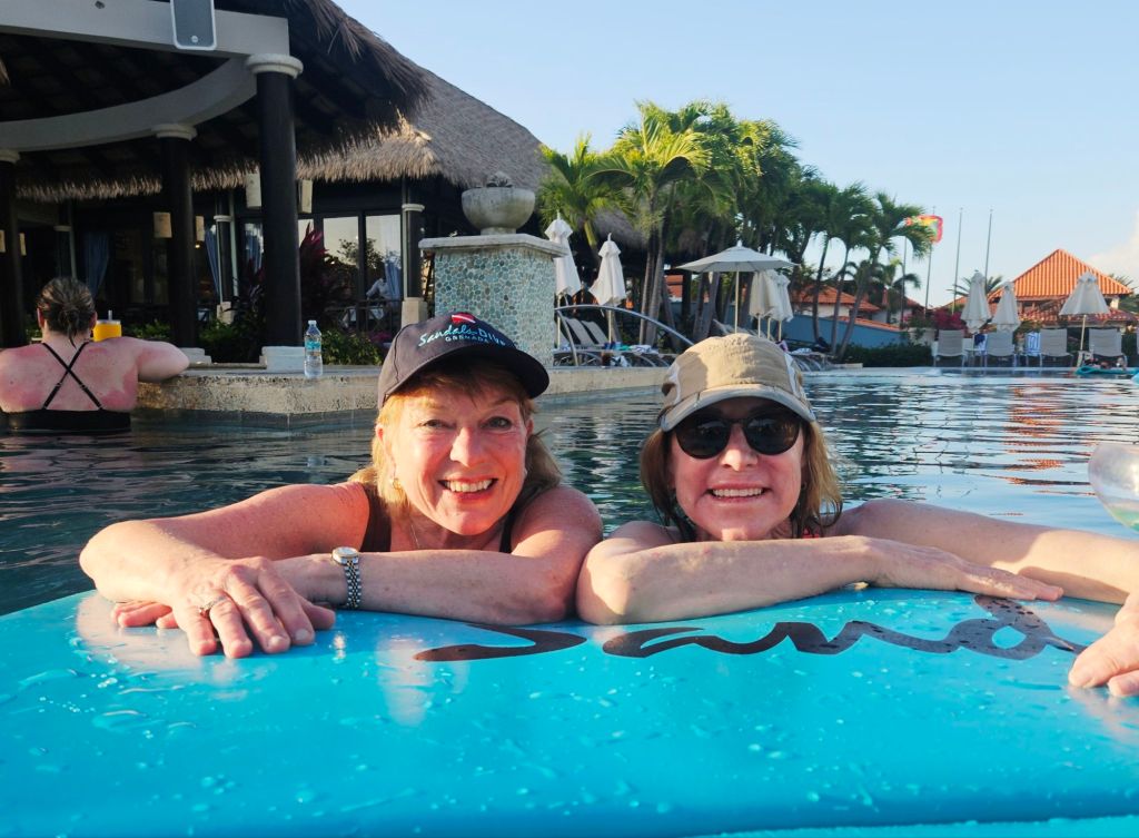 The 2nd pool features a fire-lit sitting area in the center. Here’s the view from one of the resort’s tall buildings. Sandals is known as a “couples-only” resort which doesn’t invite children. One guy asked me, “Where is your husband?” (Pretty bold!) I said, “I’m here with my girlfriend.” He seemed taken aback. Like I said, we’re not typical. We met just one other woman traveling with girlfriends after her spouse died. Since I don’t have a husband, I’m grateful for traveling girlfriends. I would love to do this with the man I love, but it’s not to be, so…break the mold and find other options!