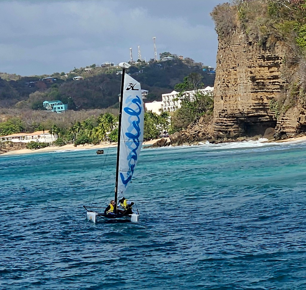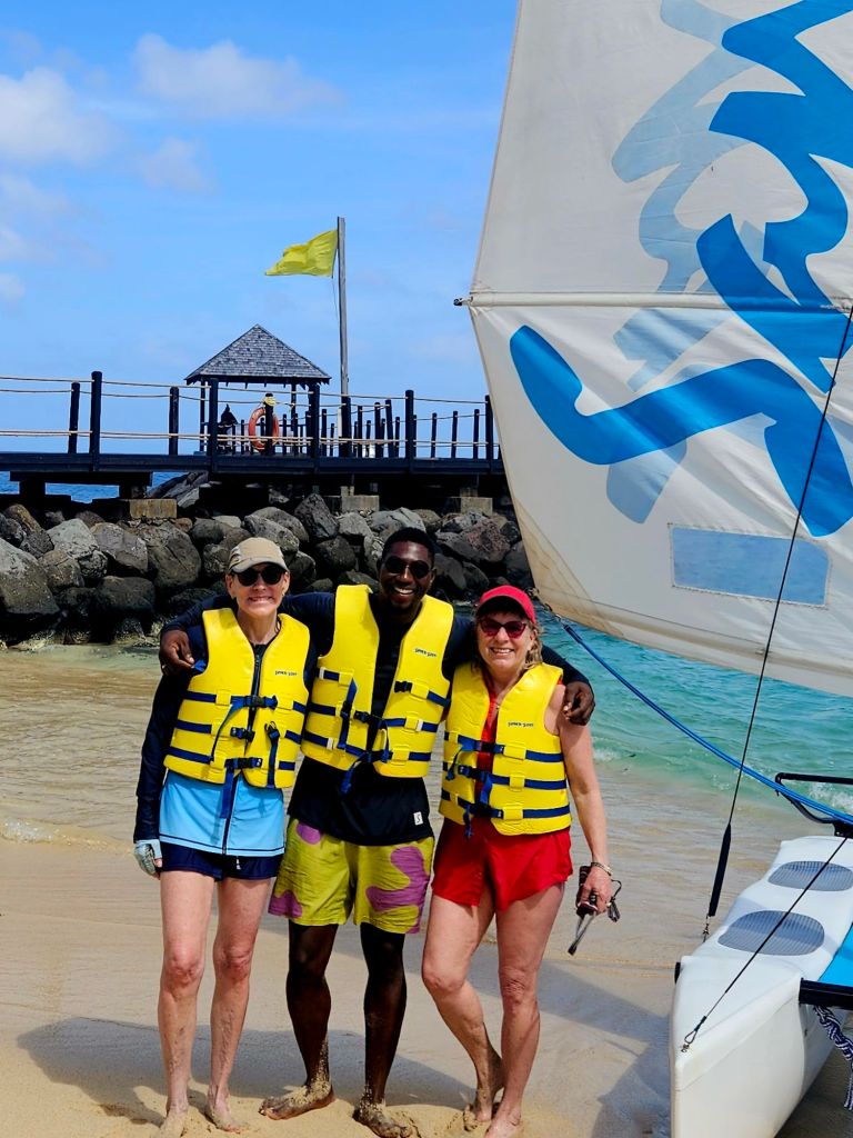 Diving wasn’t the only water attraction here. When the wind lifted enough, we took out the Hobie Cat–with a local along for help. We’re both certified to sail solo but have learned to respect our lack of knowledge about local winds and currents. During a trip to Mexico, I nearly sailed into a dock during on-shore wind. (Better than sailing out to sea!) I still remember the local running up and down the beach yelling “Return to base! Return to base!” The lesson stuck.
