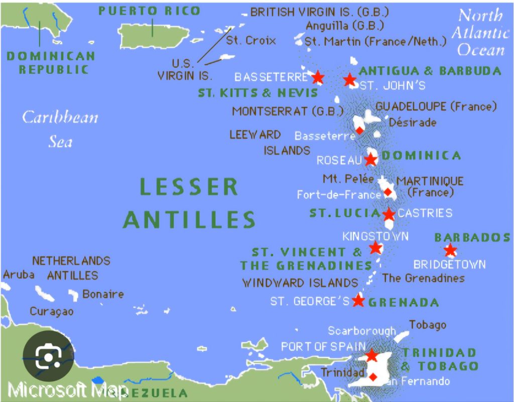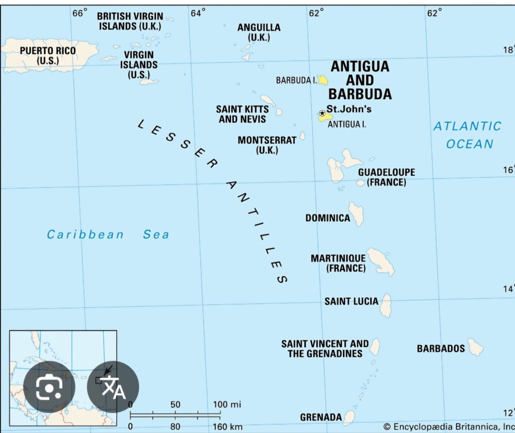Grenada is part of the Lesser Antilles, the group of Caribbean Island that form the east edge of the Caribbean where it meets the Atlantic Ocean. It’s about 100 miles off the coast of Venezuela. First named Concepcion by Columbus in 1498, it was colonized by Great Britain and gained independence in 1974. The U.S. invaded Grenada in 1983 after a Marxist coup.