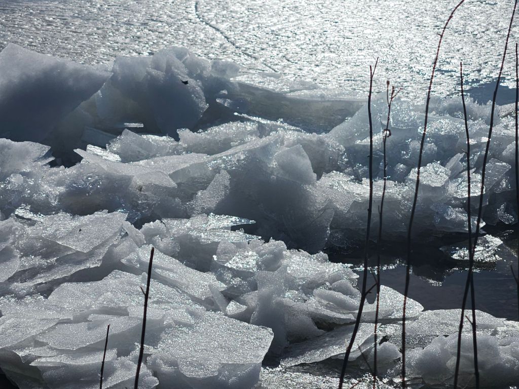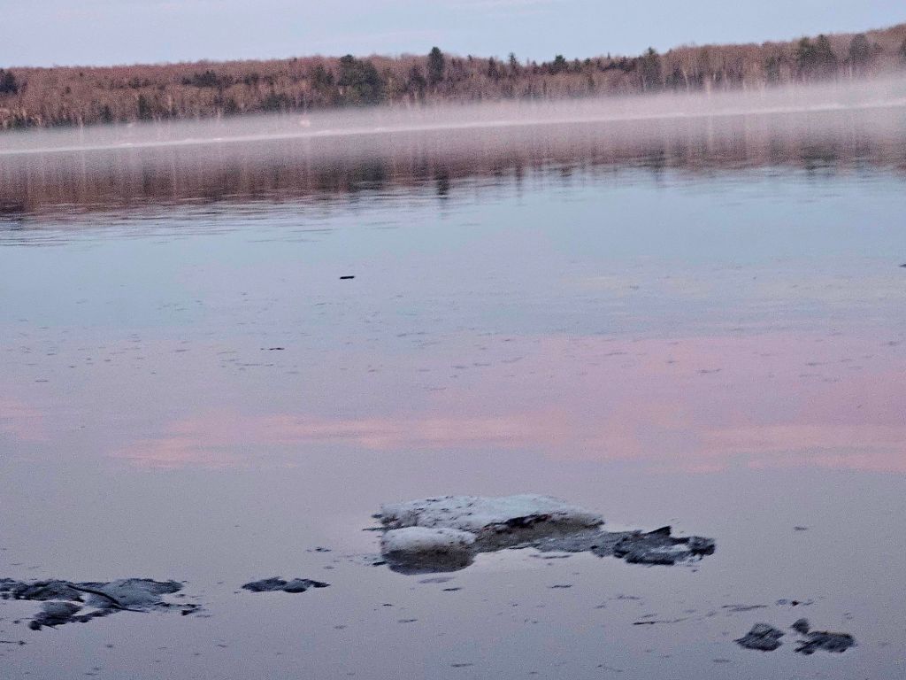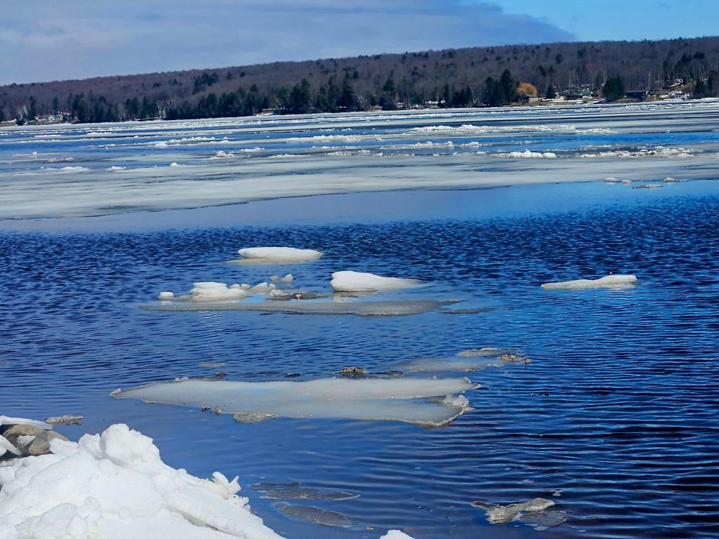 The ice on the bay broke up but remained into late April, passing back and forth in front of Camp Many Moons with the seiche (tide) and the wind. One day it’s gone. The next, it’s back.