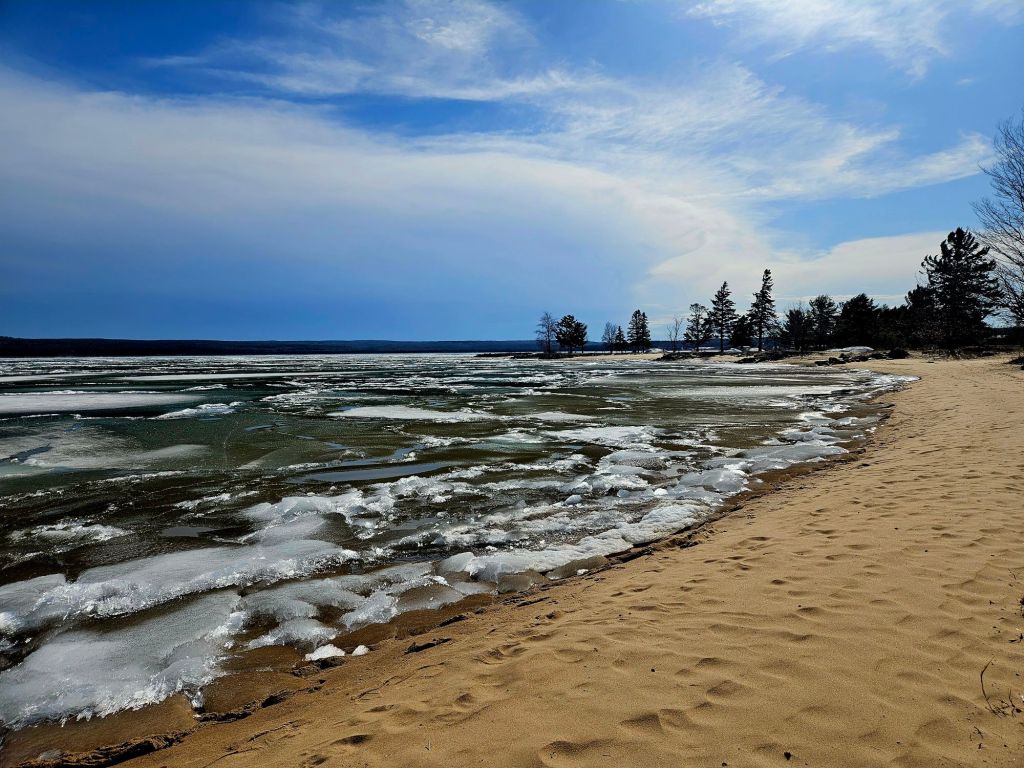 At Sand Point in Baraga, ice still lined the sandy beach and floated in the bay, until…