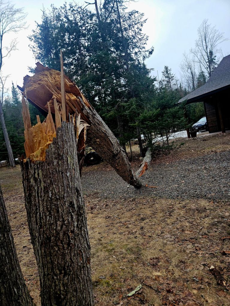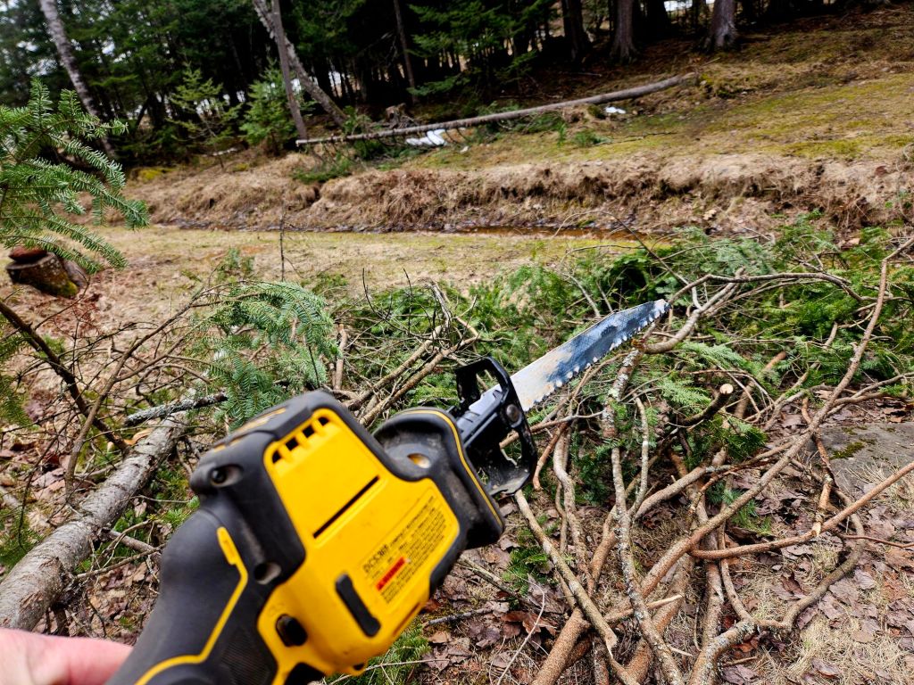 …while I borrowed a different neighbor’s “sawz-all” (a tool that saws anything) to cut branches from a balsam that also was down.