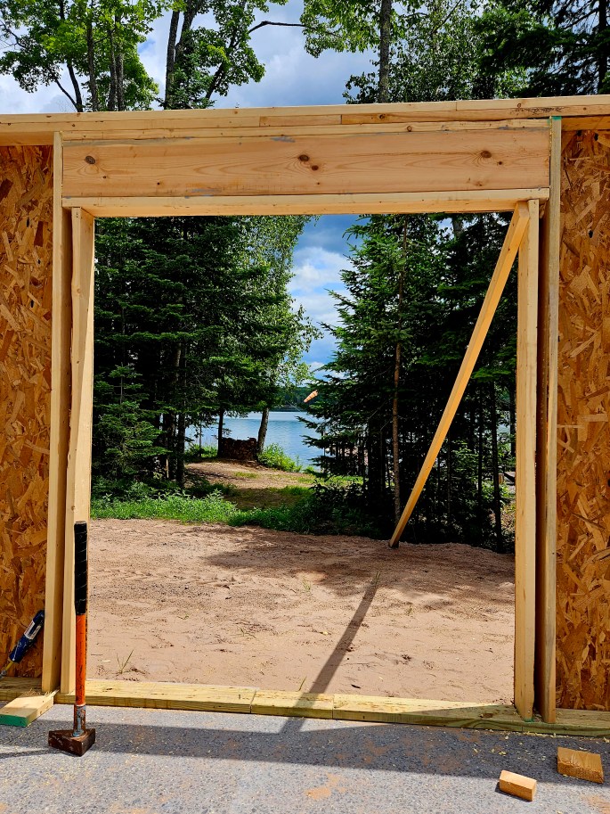 The vision takes form...3 patio doors and 10 windows, with a view to the water or woods or both. That's a lot of glass for a 1,000-square-foot dwelling. And that's the point. With four walls up now, the Cabin at Many Moons in Michigan's Upper Peninsula (U.P.) emerges more every day. It brings to mind … Continue reading A View Runs Through It
