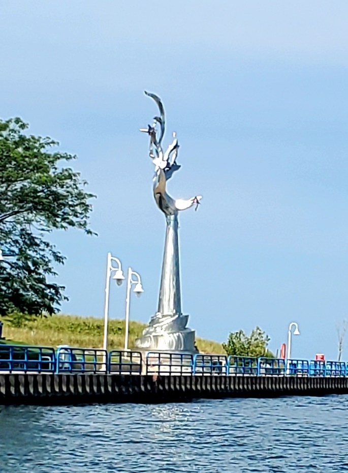 The sculpture at the entrance to St. Joseph is called "And You, Seas." It's the sounds of St. Joseph that grab me: trains that run right by the marina, church bells and live music from across the channel, the warning horn of the nearby swing bridge that's about to open, and the deep honk of … Continue reading To St. Joseph (Day 29-30)