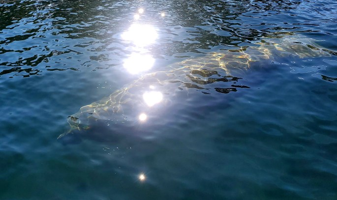Yesterday, manatees. Today, crab pots. Florida in late November! I write this on Sunday night from the small town of Cedar Key, about 30 miles north of Crystal River. Many Moons is almost 100 miles away, moving south as I move north. But I got to see her one more time. A manatee comes close … Continue reading Manatees & Crab Pots (Day 120)