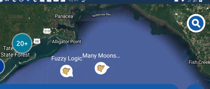 Many Moons spent Thanksgiving night at anchor, 10 miles off-shore. Huh?? Yup! That's how shallow it is off Florida's north-west coast. Just 15 feet deep. I wasn't there, of course. (See previous post.) Jeff sent me these photos as I waited in Carrabelle to meet my Michigan friends and my car. But I can't seem … Continue reading Anchoring 10 Miles Out (Days 118-19)