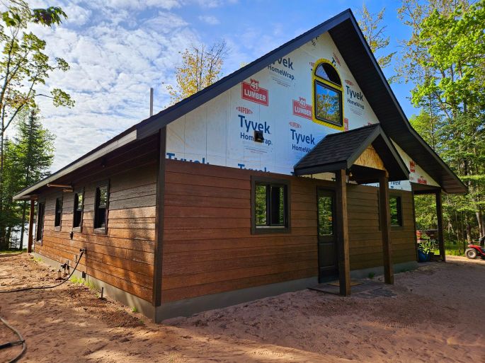 Whew. What a joy to cover up that white plastic sheeting we've been looking at for months. My new cabin is finally getting its skin...brown skin, to help it blend into nature's background. Almost one year after we began this "let's build a house" nuttiness, the outside is starting to look like the vision in … Continue reading Siding Going Up!