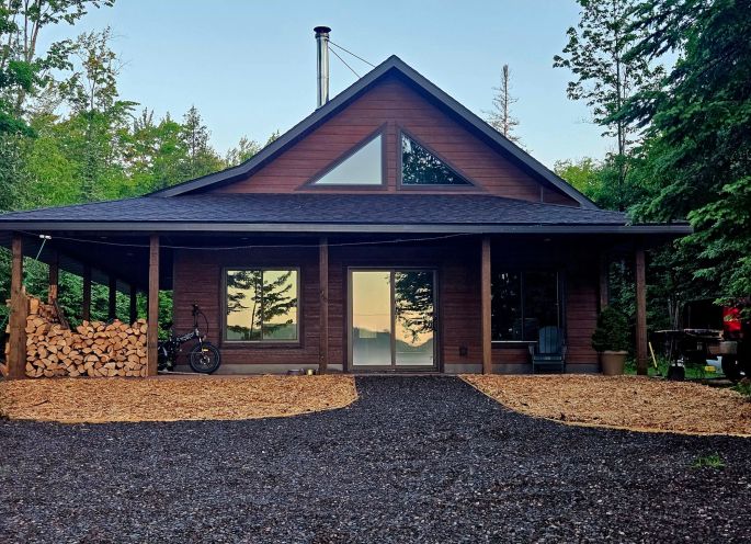 Siding done. Yes! Attention now turning outdoors again...to piles of gravel and wood, and the tiniest bird to grace Camp Many Moons. See also, below, a cameo appearance by our domesticated animals.... With siding all on, the Cabin at Many Moons actually looks like a cabin, both from the road... ...and from the water. Notice … Continue reading Big Piles & Tiny Birds