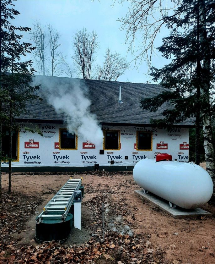 It worked. The water flowed. Hot. In the floor. The Cabin at Many Moons has heat! Six months ago today, we laid orange tubing into sand that would become a foundation and, eventually, a house. (The report of that day is posted here.) Today, those same tubes began to carry the hot water that will … Continue reading Heat Underfoot!