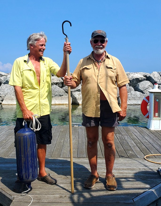 Our arrival at Slip F-126 in the St. Ignace Public Marina is not fun - except for meeting a new friend. His name is Phil. He lives in his fishing boat all summer. He arrived with a pole. A long one. Just in time. Entering new marinas is occasionally easy but usually stressful. This is … Continue reading To St. Ignace (Day 12)